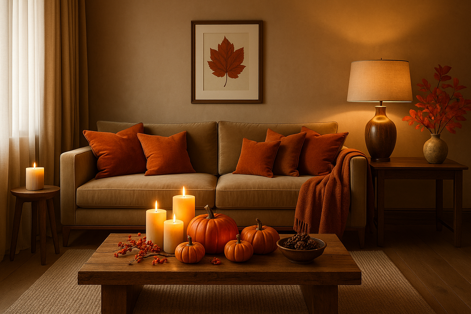 Interiér sa môže v októbri premeniť na útulné útočisko. Stačí pár detailov: hrejivý plaid na pohovke, hlinený hrnček s čajom a tekvicové dekorácie v rôznych odtieňoch oranžovej. Jemné svetlo sviečok, rozmiestnené po miestnosti, vytvára ilúziu ohňa – a s ním aj pocit bezpečia.